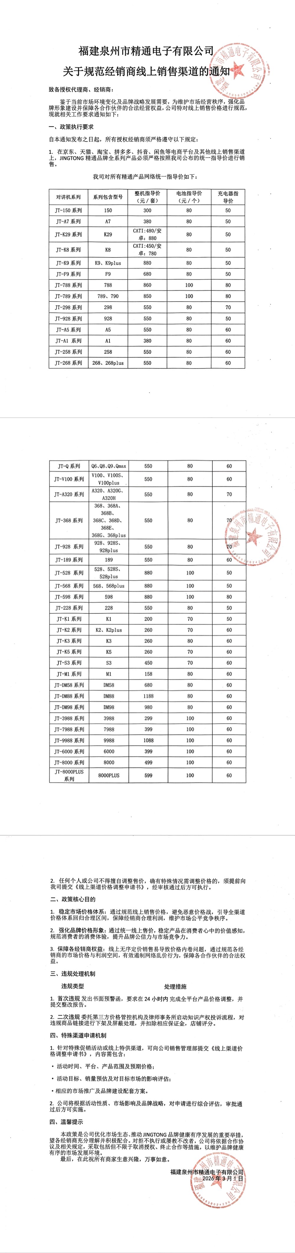 精通電子有限公司線上價格管理通知
